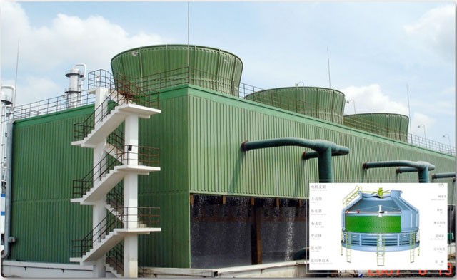 冷卻塔是利用水與空氣流動(dòng)接觸后進(jìn)行冷熱交換產(chǎn)生蒸汽,蒸汽揮發(fā)帶走熱量達(dá)到蒸發(fā)散熱、對(duì)流傳熱和輻射傳熱等原理來(lái)散去工業(yè)上或制冷空調(diào)中產(chǎn)生的余熱來(lái)降低水溫的蒸發(fā)散熱裝置,以保證系統(tǒng)的正常運(yùn)行,裝置一般為桶狀,故名為冷卻塔。逆流式冷卻塔是水流在塔內(nèi)垂直落下,氣流方向與水流方向相反的冷卻塔。